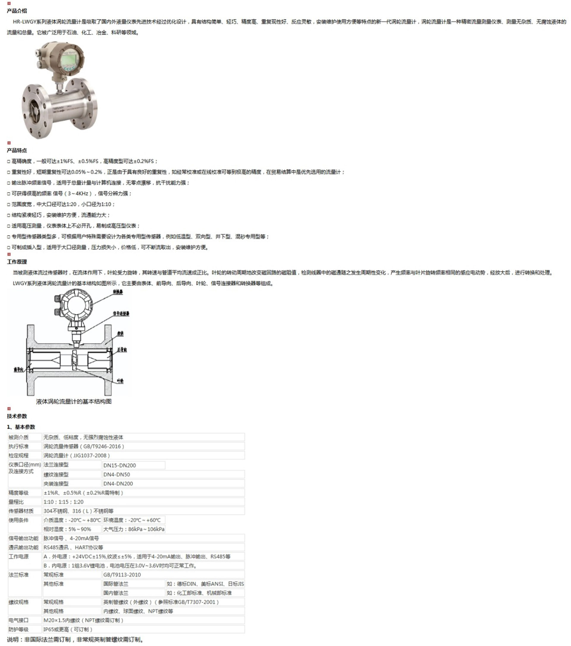 HR-LWGY系列液體渦輪流量計