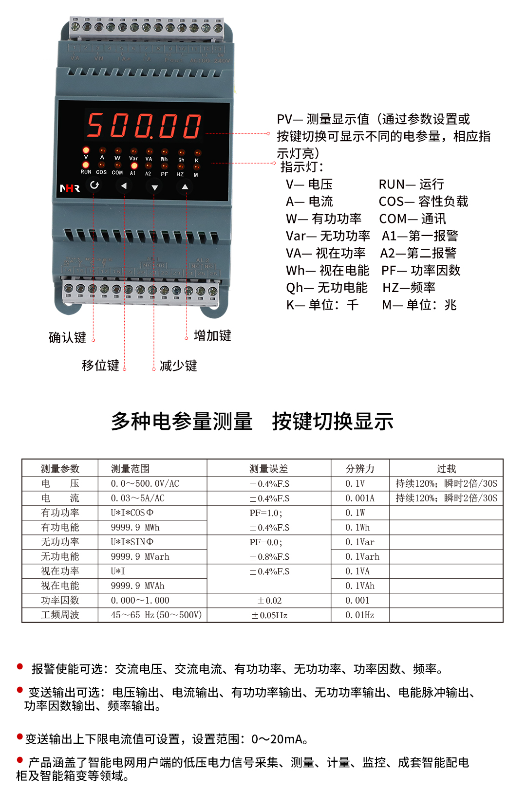 NHR-D13系列單相LED顯示智能電量變送器
